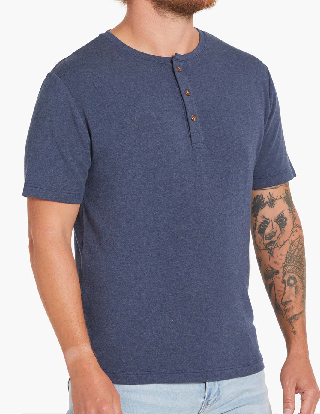 Versatile. Dependable. BUTTERY SOFT. This stone blue short sleeve henley will instantly become a staple you can rock any day at any time. It's built with work, play, and lounge in mind and brimming with stretch. Look good in any occasion.