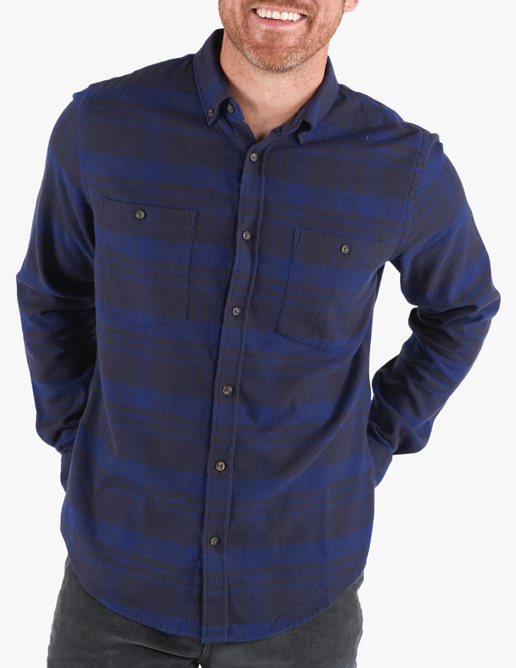 Flannel you make me feel so good, you make me feel so good. And for good reason. Hand-milled in a family-owned Portuguese factory, this elevated Blackwatch blue stretch flannel is perfectly crafted from top to bottom. Pair it with your favorite Mugsy Jeans and lay waste to that pile of wood at an AirBnB or that bottle of your favorite bourbon.